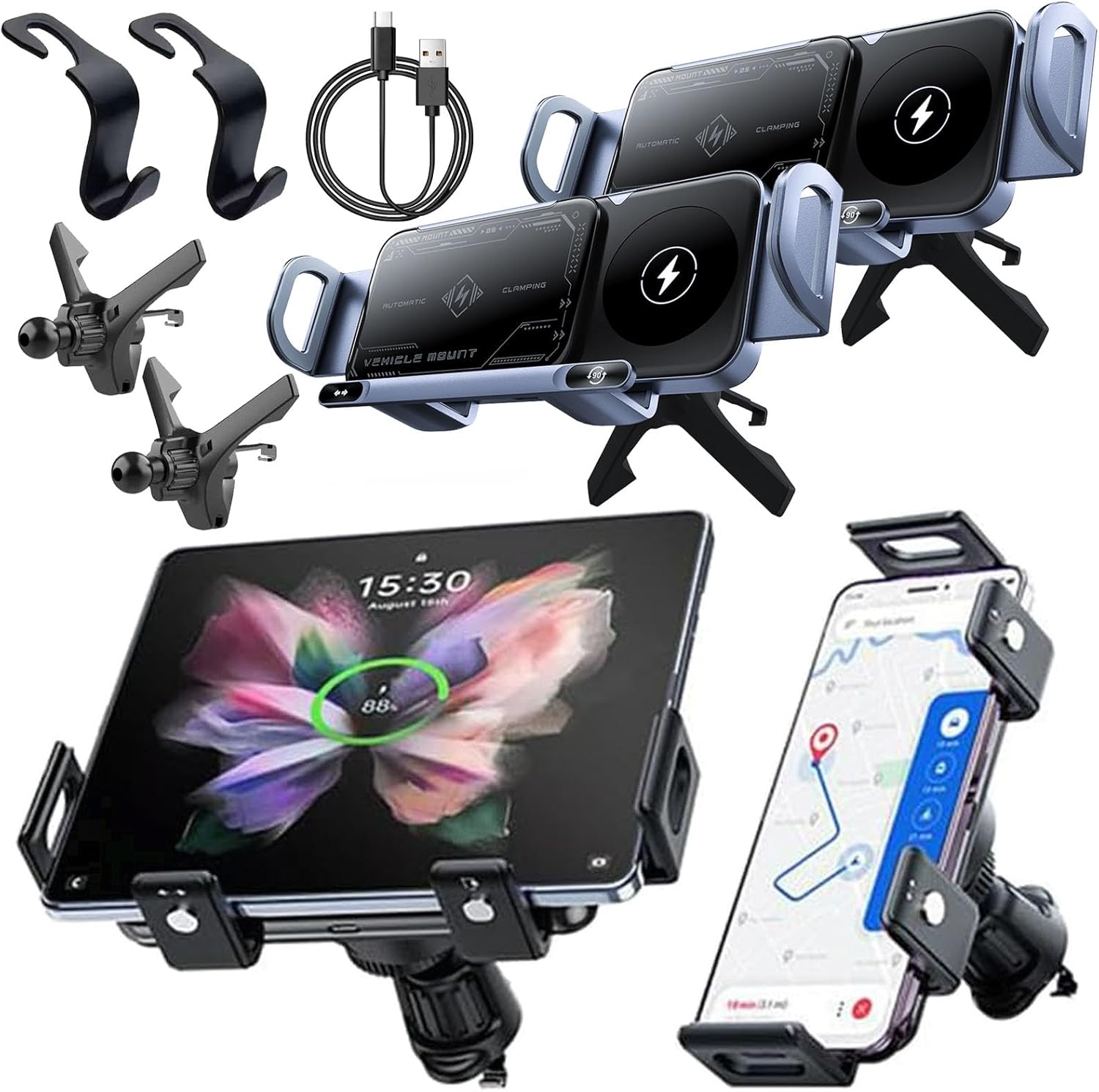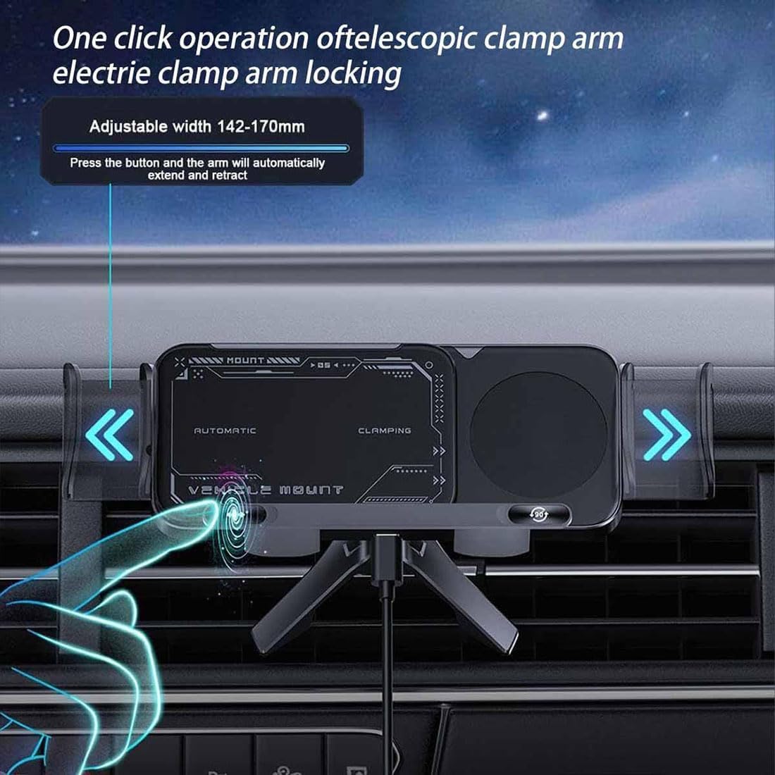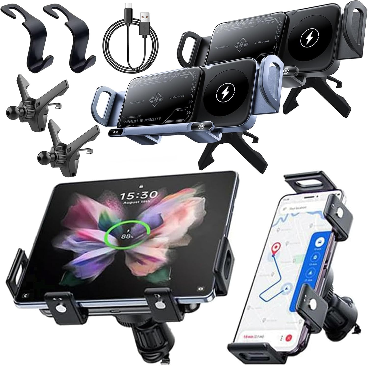 🚗📱Experience luxury and innovation with our smart wireless charging stand. 🌟 Features sophisticated metal arms, 360° rotation and advanced temperature control to keep your devices cool and charge elegantly. The ultimate fusion of sophistication and technology. Features: ● 15w dual coil six-fold charging protection ● 360° rotation to create a unique driving perspective ● Fully automatic metal clip can be operated with one hand ● Thickened silicone pad is shock-resistant and non-slip to protect the phone ● Reserved charging port, wired and wireless charging at the same time Specification: Name: 2024 High Intelligent Mobile Phone/Pad Holder Color: Black, Silver Material: ABS+PC+electroplating+aluminum hardware Applicable location: Suitable for all car air outlets Wireless charging output: 5W/7.5W/10W/15W (MAX) Charging interface: Type-C Total power: 15W Size: 6.1*2.75*3.15in/155*70*80mm Package Includes: 1/2pcs High Intelligent Mobile Phone/Pad Holder 1/2pcs Triangle Fixing Frame 1/2pcs Data Cable 1/2pcs Instruction Manual 2pcs Universal Car Hook Notes: 1. Please allow slight dimens error due to manual measurement.Thank you for your understanding. 2. Due to different monitors and different lighting, the picture may not show the actual color of the item. Thank you for your understanding.