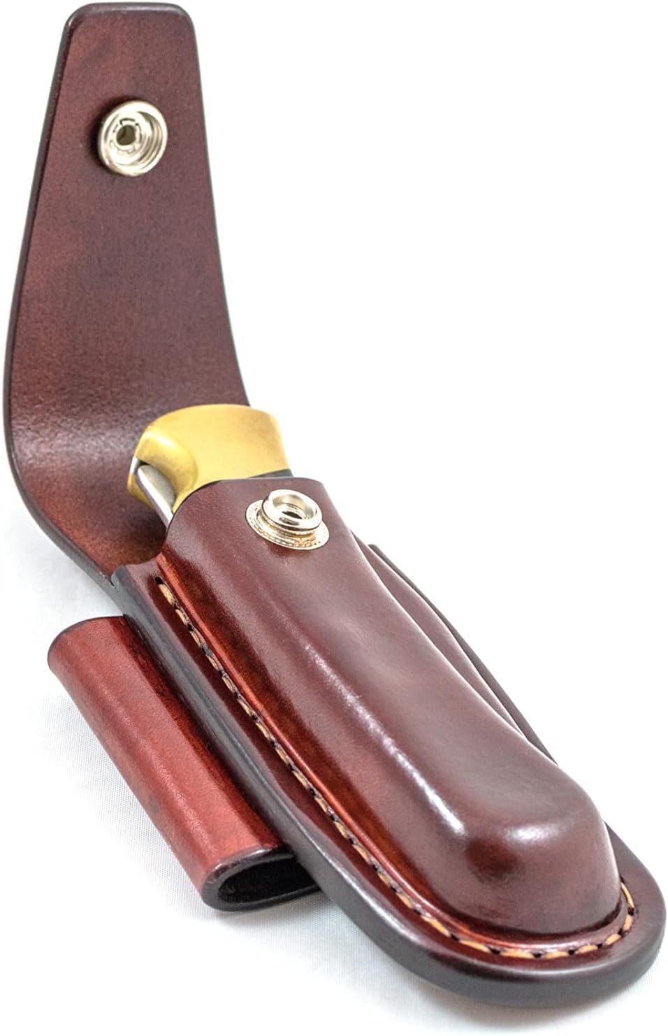 Closed top horizontal sheath made to fit buck 110 folding hunter.This listing is for the sheath only, knife not included ! The sheath is made for the clip point blade version of the knife. Will also work with the 110 auto produced by buck. It can be made for the drop point blade, just let me know by sending me a message. This sheath is horizontal carry. Usually I make them to be carried on the left side, opening of the sheath facing the right hand. If that's the way you want yours - just make the order. If you want it right side carry to face the left hand - just write me a message after placing an order and I'll make yours like you want it. Please note that this item is made to order. For more knife cases, pouches, slips and sheaths from me visit my profile.