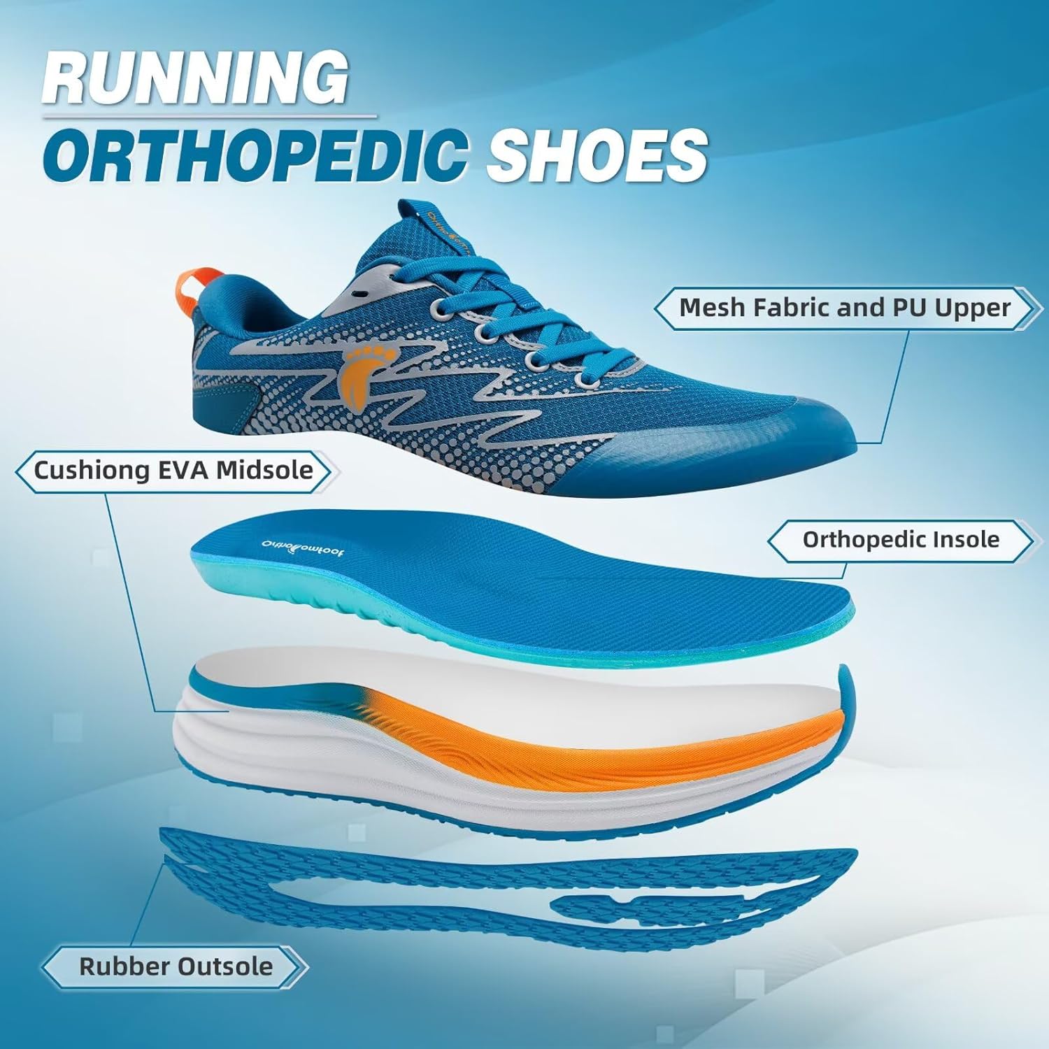 Men's Orthopedic Tennis Street Running Shoes: Soft Supportive Plantar Fasciitis Orthotic Composite Toe Sneakers, Breathable High Instep Bunions Recovery Sport Walking Shoes Blue/Orange Size 11.5