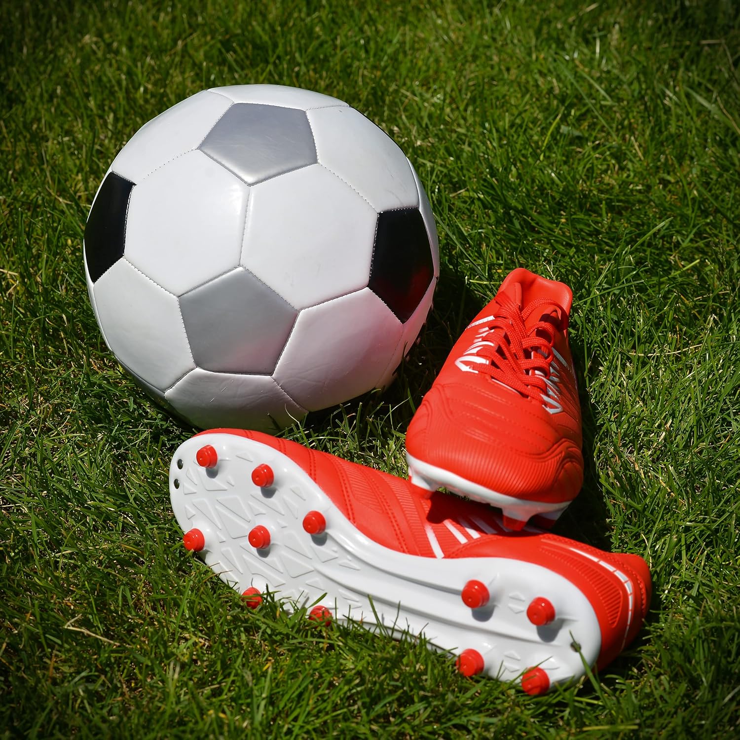 • DURABLE TRACTION FOR FIRM GROUND DOMINANCE | Outperform the competition on grass and hard ground with our firm ground soccer cleats featuring a molded TPU outsole and round studs. Built for control and agility, they’re ideal football cleats for men, guayos, and players looking for reliable grip without the premium price tag.
